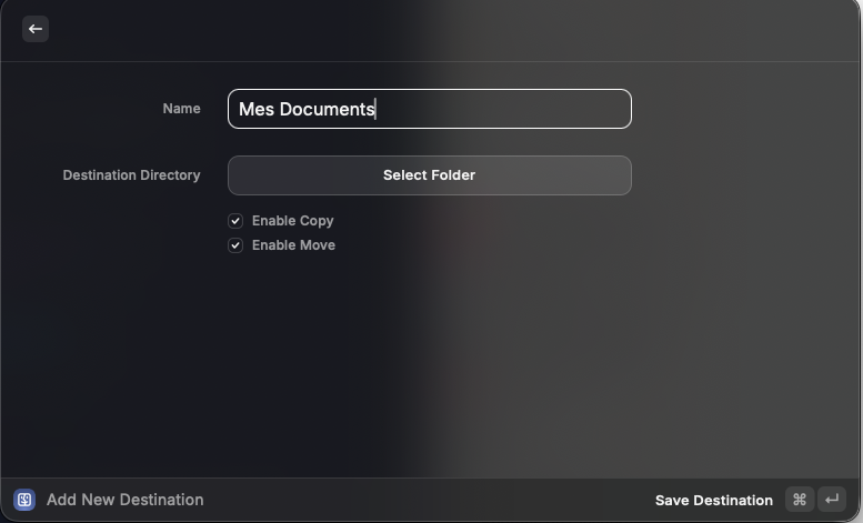 Section intitulée « Utilisation »Installez l’extension CopyMoveto pour Raycast ici.