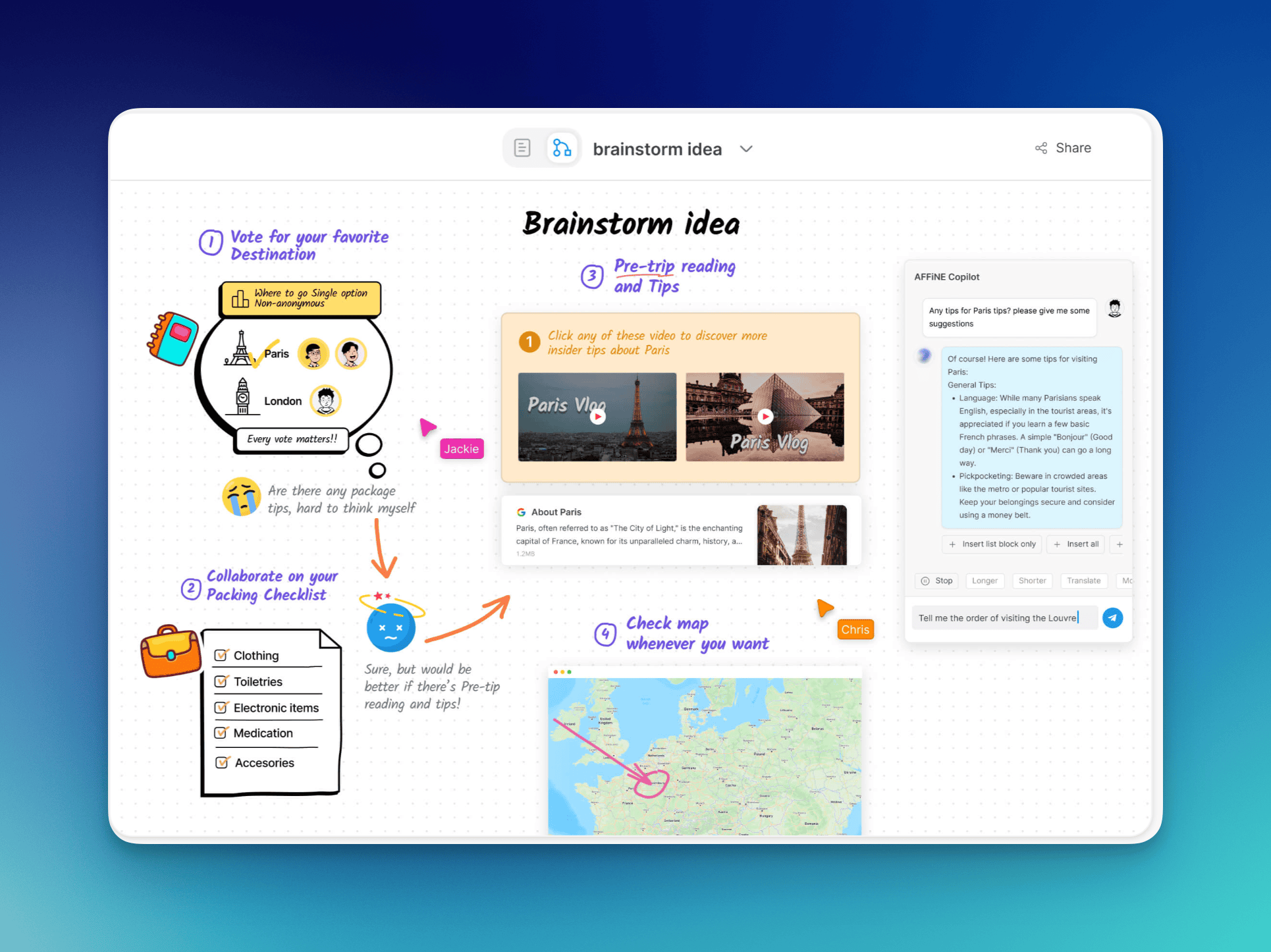 Un outil de notes super élégant proposant une alternative à Notion mais avec la faculté de faire des schémas style whiteboard pour du brainstorming.