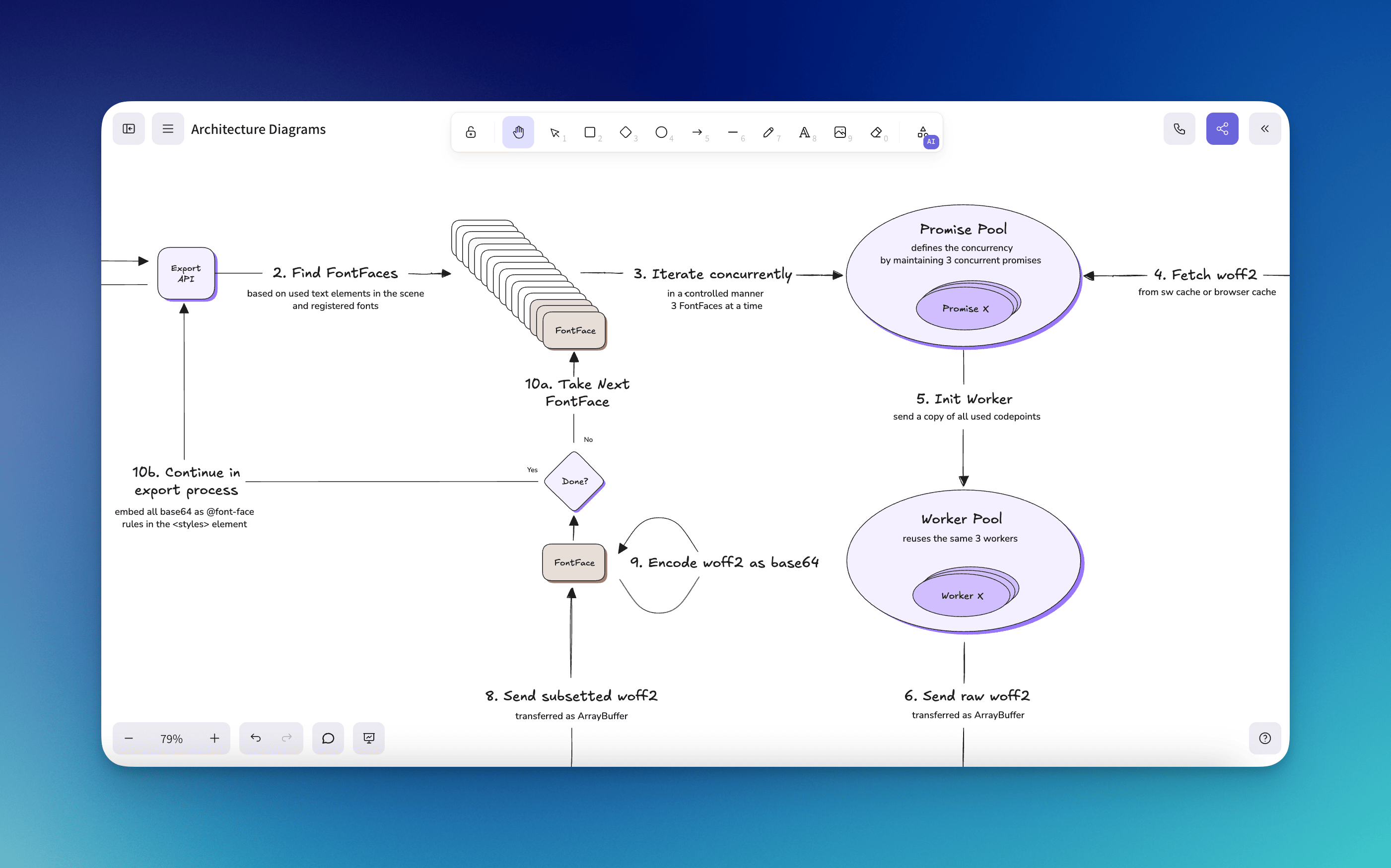 Excalidraw me permet de faire des schémas, du mind mapping, au sein d’une simple page web. Il dispose de fonctionnalités d’export en PDF/PNG et très fluide.