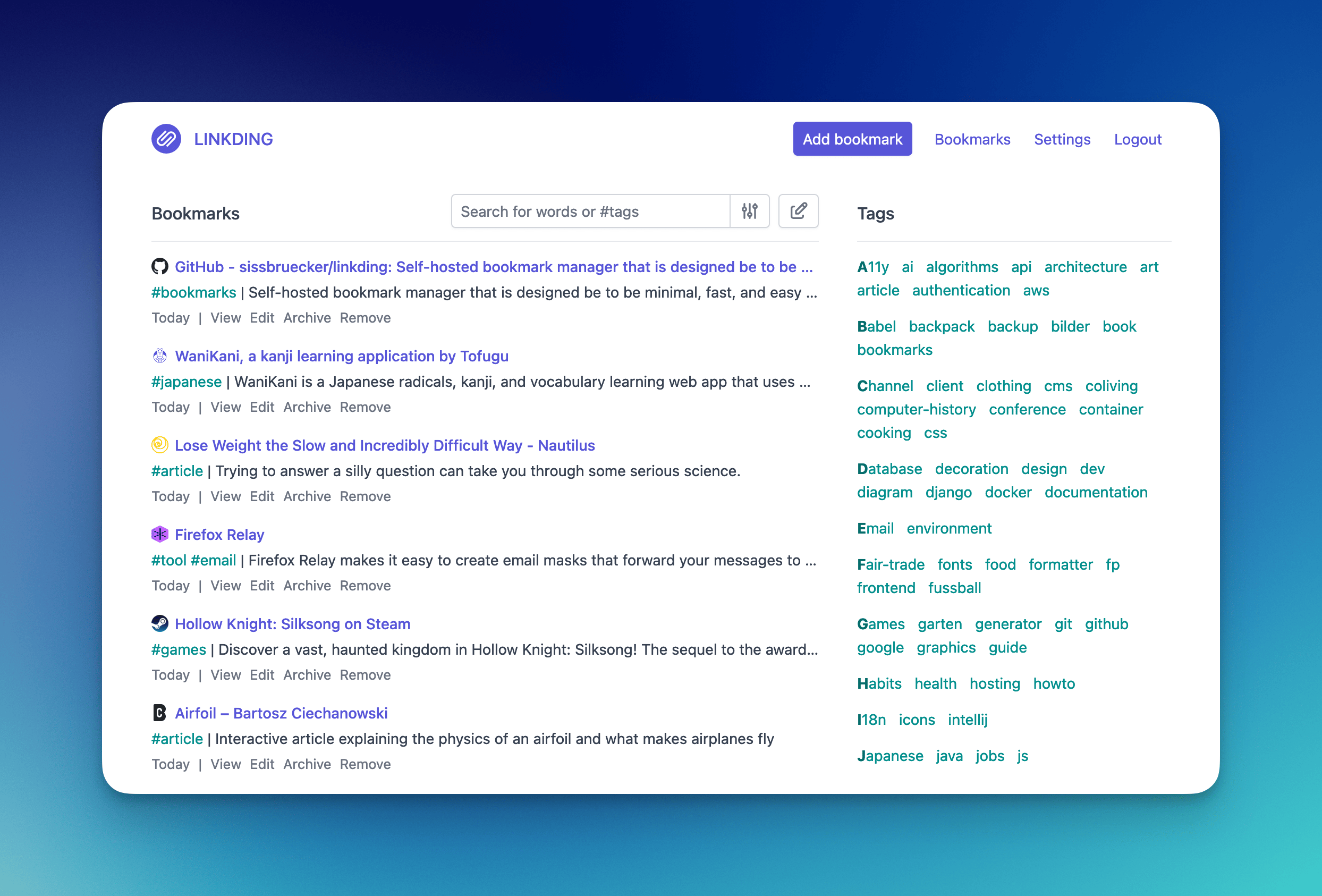 15) 🔗 Linkding : Pour suivre les liens à lire plus tard, dans le cadre de ma veille