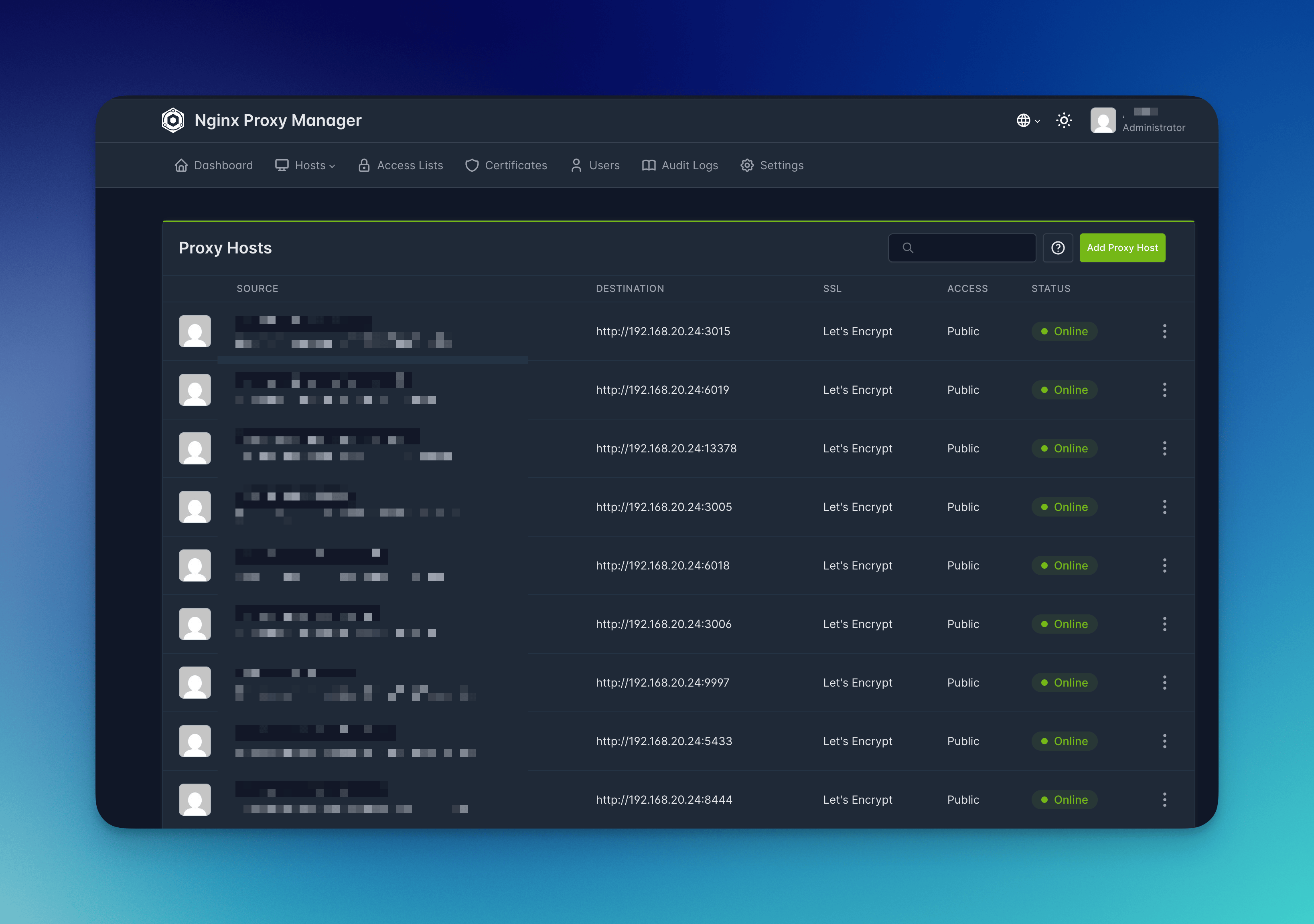 C’est mon tableau de bord central pour la gestion facile des proxys. Il vous permet d’accéder à tous vos services hébergés (comme Nextcloud ou Plex) via des noms de domaine personnalisés avec des certificats SSL/TLS gratuits fournis par Let’s Encrypt.