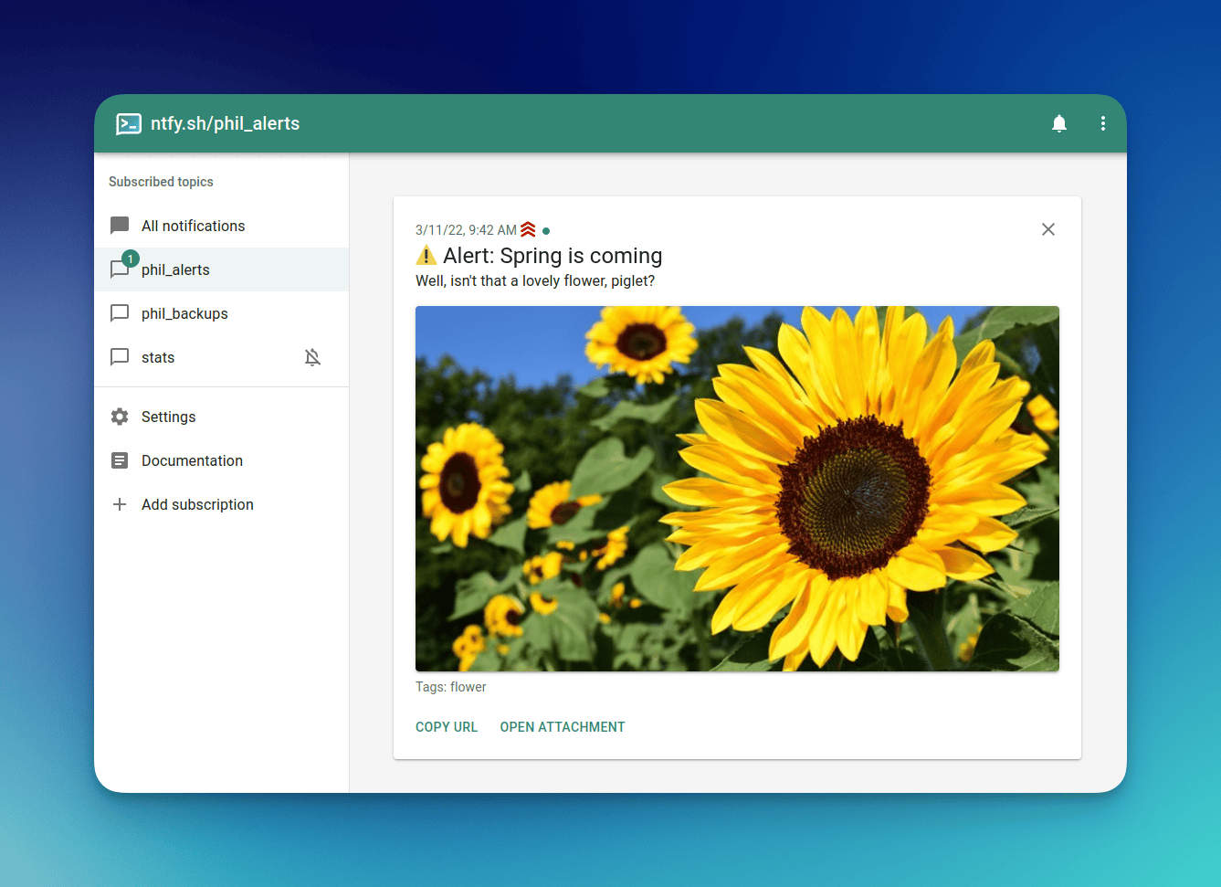 NTFY me permet de recevoir des push de notifications et permet d’être envoyé via une simple requête HTTP. Il est disponible sur iOS et Android, il permet de mettre en place de façon simple et en version auto-hébergée des notifications pour par exemple un problème qui aurait lieu sur votre homelab.