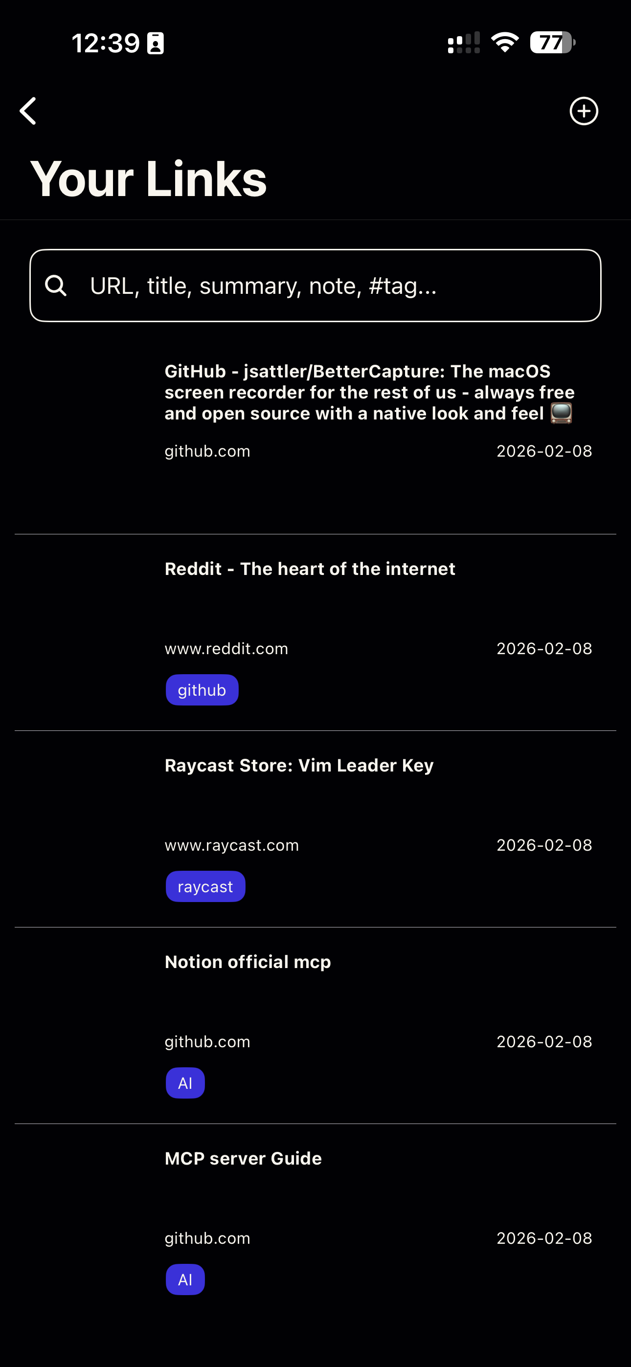 Section intitulée « Sauvegarder vos liens plus rapidement avec Raycast »Comme vous le savez, je suis un fan de Raycast. Si vous l’utilisez, l’extension Linkding pour Raycast est un indispensable. Elle permet de :