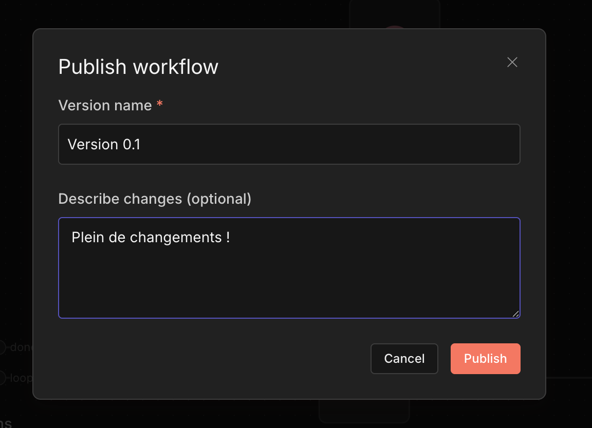 Désormais, enregistrer un workflow ne modifie plus directement la version en production. Il faut désormais utiliser le bouton “Publish” à cet effet.