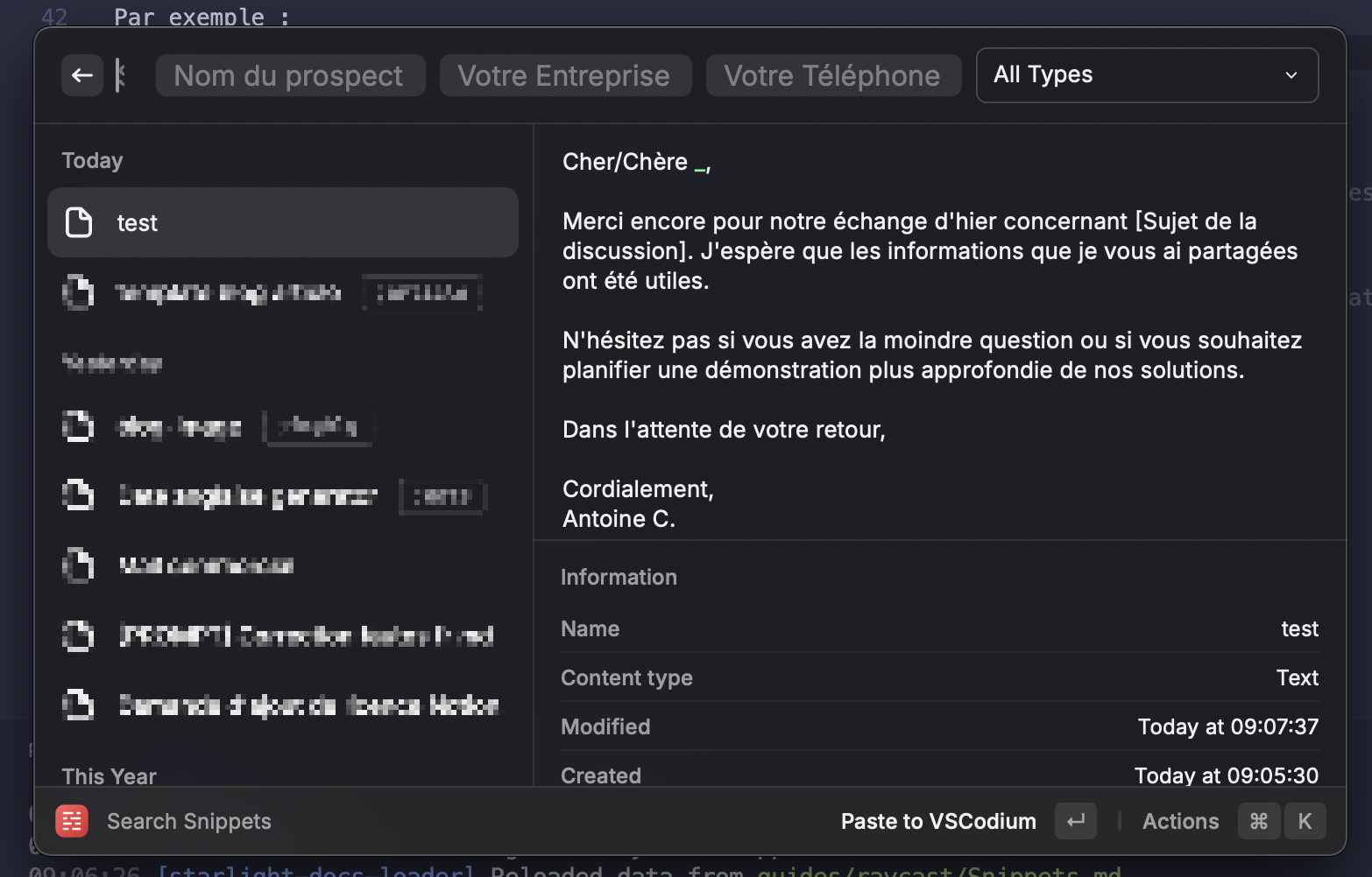 Et voilà vous savez maintenant tout sur les snippets dans Raycast !
